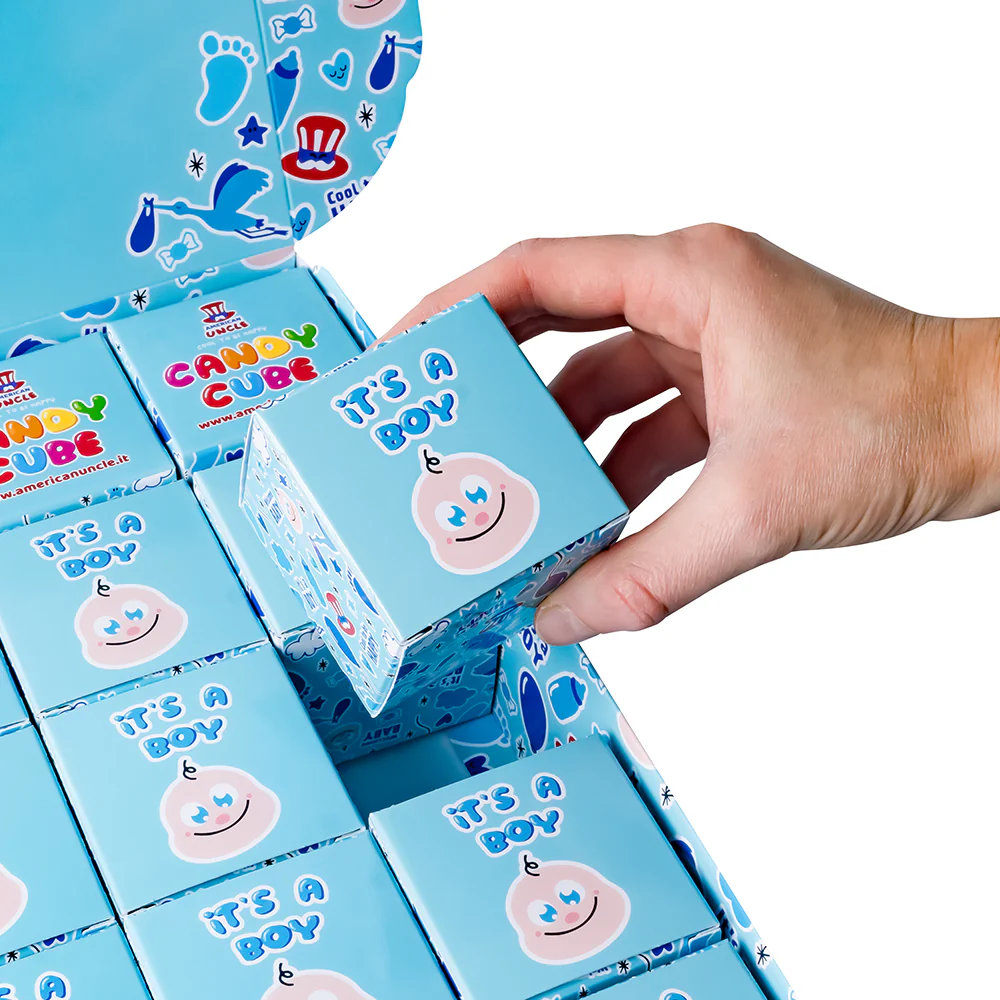 Candy Cube Kit “It’s a boy”, scatoline di caramelle gommose da 50g ideali per il baby shower o nascita (25, 50 o 75 pz)