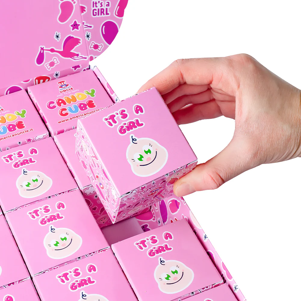 Candy Cube Kit “It’s a girl”, scatoline di caramelle gommose da 50g ideali per il baby shower o nascita (25, 50 o 75 pz)